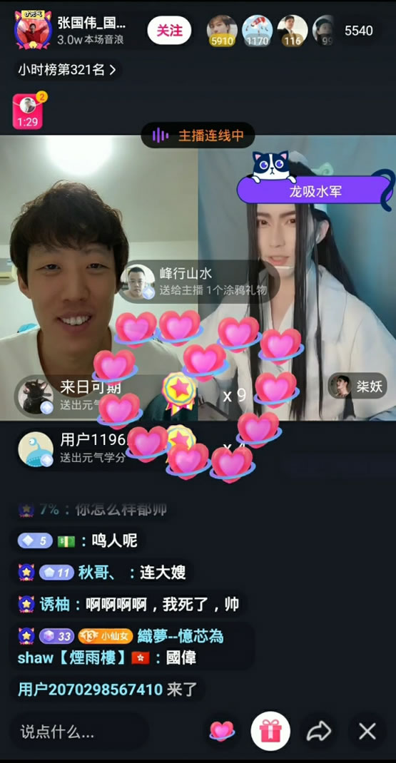 张国伟与李昂的连麦将直播推向了一个小高潮,连麦一开始李昂便为观众们复现了抖音上大火的日语梗“娜娜米”,动漫角色巴卫那磁性低沉、温柔又不失霸气的声音被完美复原,吸引动漫粉丝强势围观,观看人数直接破万。