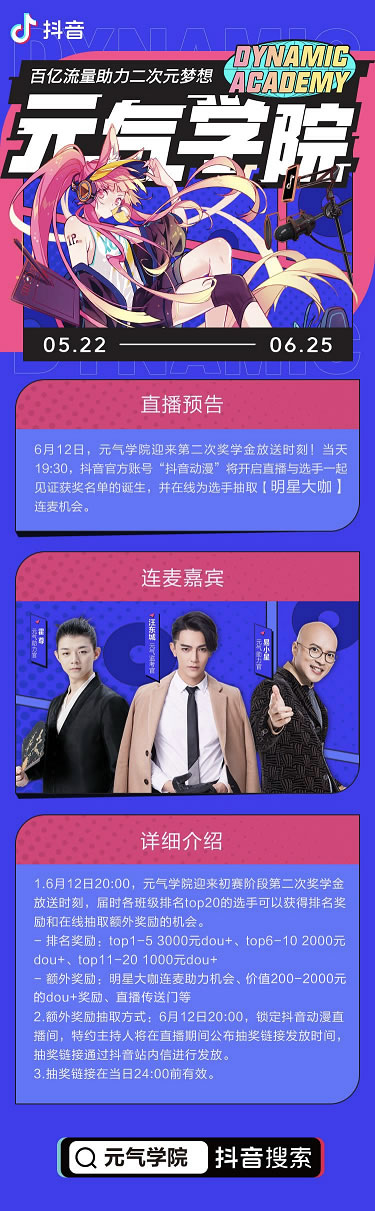 日前,抖音上线了元气学院,以“百亿流量助力二次元梦想”为理念,共开设轻漫班、声控班、绘画班、出镜班、脑洞班五大主题赛道,同时设置低准入门槛和丰厚的奖励,以助力二次元创作者实现创作梦想,此次直播的心台就是元气学院出镜班的参赛者之一,而此次直播也是她给各位二次元爱好者交出的一份优秀的正能量“作品”。作为抖音的大型二次元内容创作活动,元气学院通过充分发挥抖音平台大众化、圈层穿透力等优势,为创作者提供了创作激励、流量曝光等多项扶持来鼓励创作者开播、创作,覆盖二次元直播、二次元短视频等二次元娱乐内容,既为普通用户提供更加丰富的优质内容,也助力二次元优秀创作者和优质作品破圈,推动行业发展。