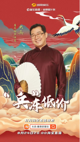 从相声演员到带货主播,大兵都希望带给观众最真实的快乐体验,跨的是行业,守的是初心,一起期待8月24日晚8点大兵的淘宝直播首秀。