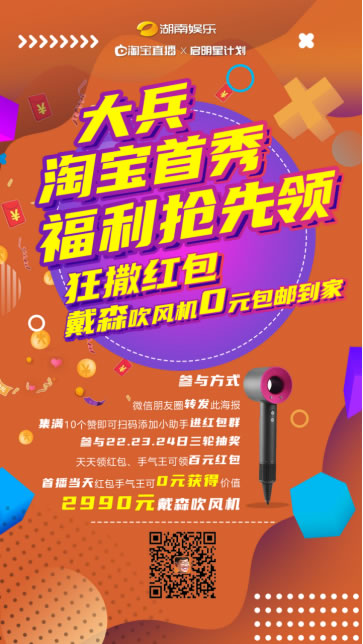 福利不是说说而已,直播有奖励,未播先送礼,24日前转发上图海报至朋友圈集满10个赞即有机会获得价值2990元的戴森吹风机~喜欢戴森的小伙伴还不抓紧机会?