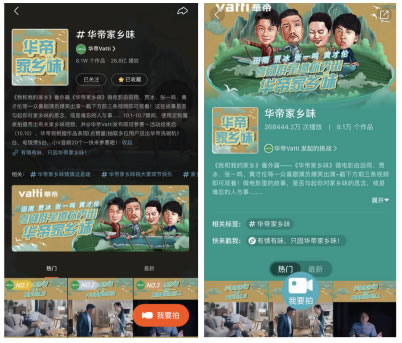 在快手平台上,华帝上线了三枚流量炸弹——打造番外曝光大动作、上线#华帝家乡味#挑战赛、“分千万迎国庆”的国庆任意门活动!激发了8万个优质原创作品,活动期间品牌总曝光超26亿。
